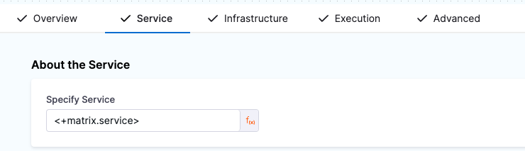 In a pipeline where you used the above matrix strategy, you could use the expression <+matrix.service> on the Service tab of the Deploy stage to call the service values.